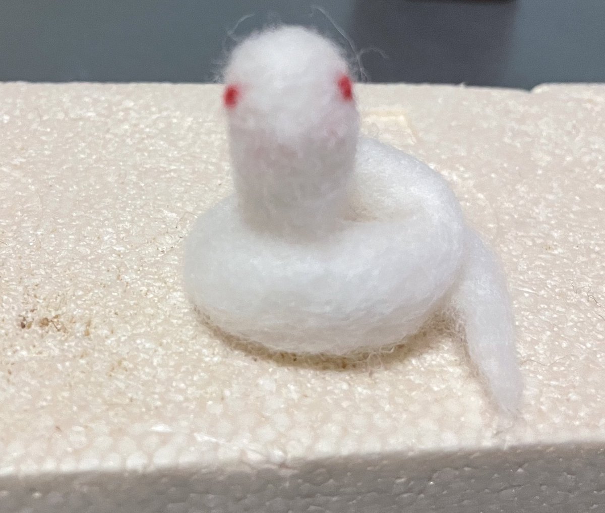 白い蛇作ってみた☺️ 白蛇見に行きたいけど遠いいから なかなか行けない🥺 #白蛇縁起 #羊毛フェルト #ふくちゃんのチクチクハンドメイド #映画館遠い #佐久間大介 #ハンドメイド好きさんと繋がりたい