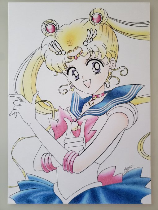 やっと… やっと塗り終わりました…😂😂😂 2ヶ月も休憩してしまいました( ꒪ͧд꒪ͧ) #模写 #色鉛筆 #セーラームーン #月野うさぎ