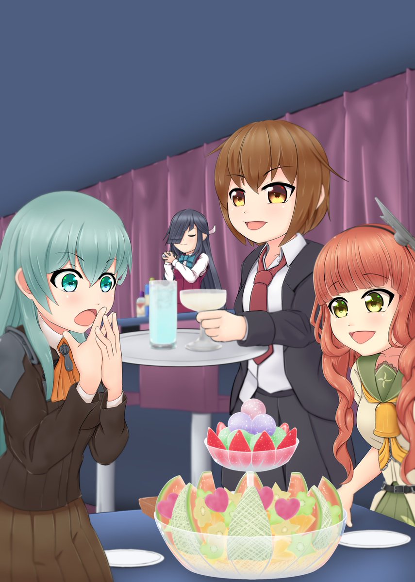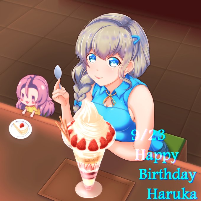 遥香誕生日記念絵 「こんなに大きなパフェ、本当に食べてもいいんですか?」 これで満足してくれると、先生うれしいなぁ…。 目の前でどんどんなくなっていくなぁ…。 …でもいい食べっぷりだからまぁいいか。 遥香、誕生日おめでとう! #バトガ #成海遥香生誕祭2021 #成海遥香生誕祭