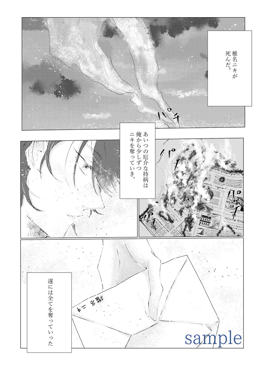 9 15 【1/8烏輪にキスして 新刊サンプル】 『拝啓。』 全年齢/A5/46p/600円(会場頒布) ニキの死後後追いをしようとする燐ねの話です。 ※※重めの死ネタ※※ ※※全部捏造※※ (1/3) サンプルの際どい死ネタ部分はワンクッション置いています。苦手な方は自衛をお願いします。 23/01/07 00:44