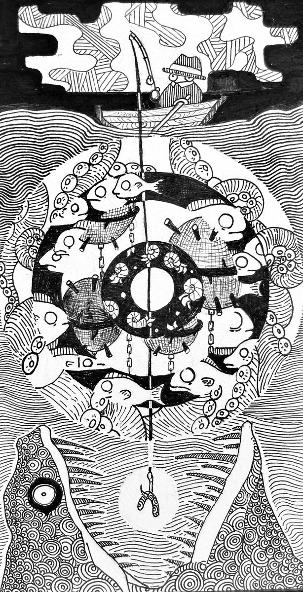 3 10 「何が釣れるかな」 タップ推奨 #ペン画 #drawing 23/07/08 21:58