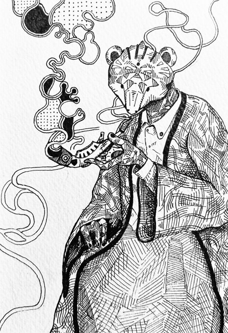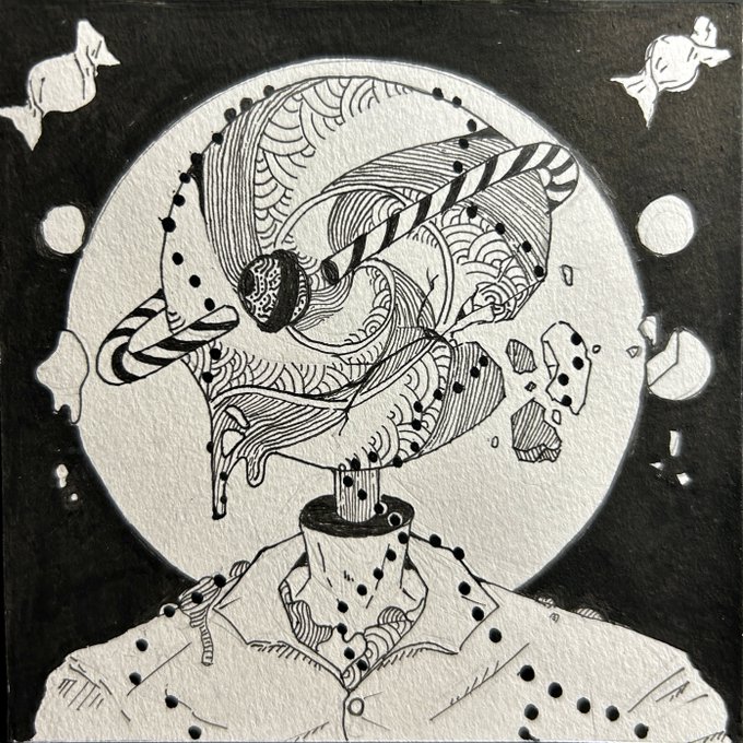 #私の絵柄が好みって人にフォローされたい 人外や抽象的なペン画 線密画を描いています