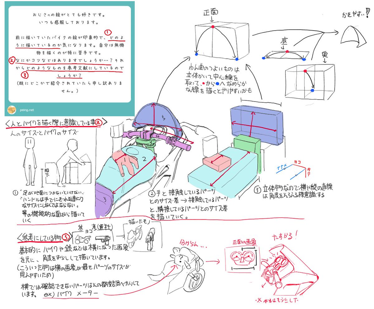 1119 7395 つまり私が絵を描いている時の意識はこういう事ですね… 角度のついた構図の書き方については一枚目で説明しているし、「線をとりあえず置かないと全体が見えない」は二枚目で説明している。 23/06/26 15:32