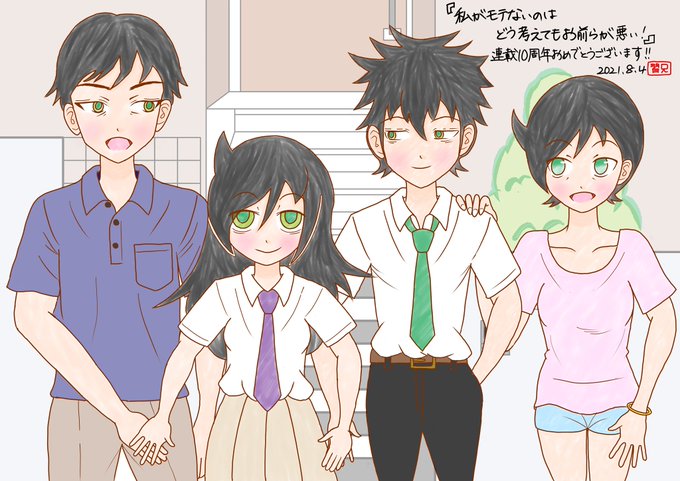 #今年も残りわずかなので今年一番伸びた絵を貼る見た絵描きさんも強制でやる 今年一番伸びたのは…わたモテ連載10周年記念イラスト。大遅刻した上に背景に苦戦しましたが「黒木家の絆」というテーマ通りに描けたと思うので、完成した時はめっちゃ嬉しかった☺️ あと、もこパパは妄想というか理想です…
