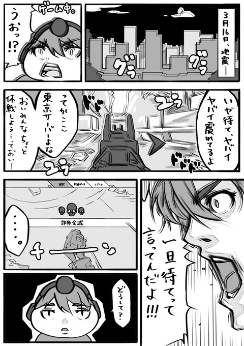 地震でも止まらない戦い。 #絵描きさんと繋がりたい #漫画が読めるハッシュタグ #絵柄が好みっていう人にフォローされたい