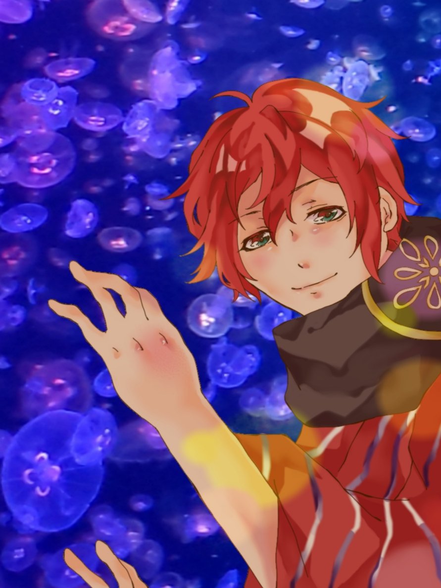 8 14 #過去作で自分が最高だと思う絵を1枚載せて5rtを目指せ しなのくん。 ご実家まわりの水族館のくらげがきれいでした。 **背景写真そのままです** 21/09/25 20:58