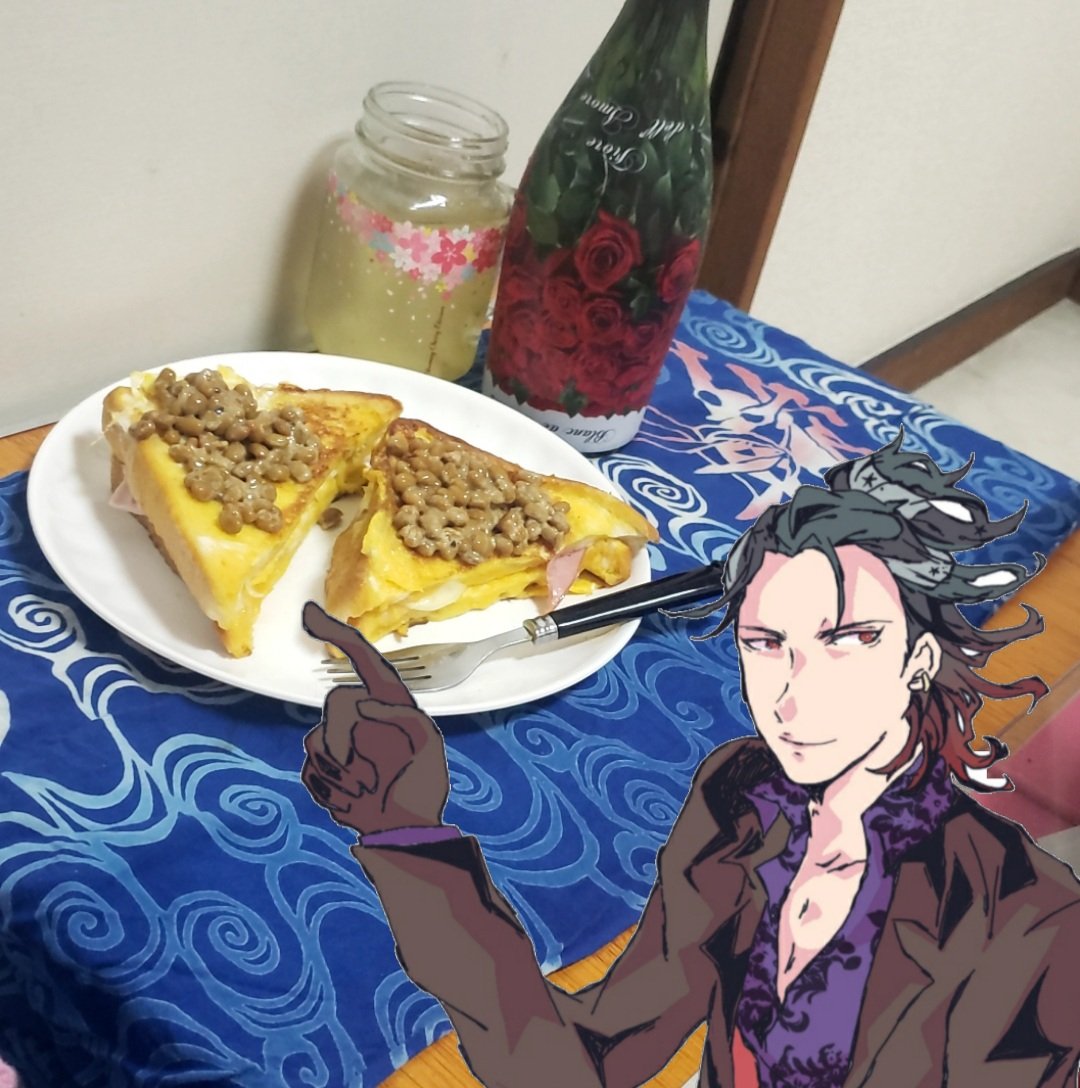 1 8 #今月描いた絵を晒そう さけのみ音頭と福ちゃん特製納豆クロックムッシュ!!! 22/06/30 18:55