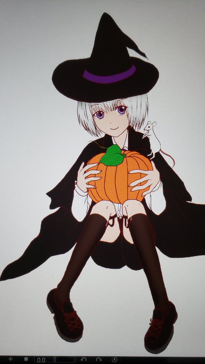 ご飯食べて母の電話応対に疲れて寝転んで猫様に腕ホールドされたまま寝落ちてた… 危ないw 今起きて色塗りしなかったら夜まで寝ちゃうコースだった💦 塗り楽しい😊 完成したら改めてちゃんとupします #ハロウィンイラスト #色塗り途中 #イラスト #Halloween