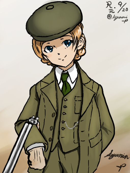 #ガルパン版深夜のお絵描き60分一本勝負 #ガルパン版深夜のお絵描き60分一本勝負_20190920 お題「オレンジペコ」 秋、英国貴族の嗜みといえば、、、狩り?ということで、この格好です。