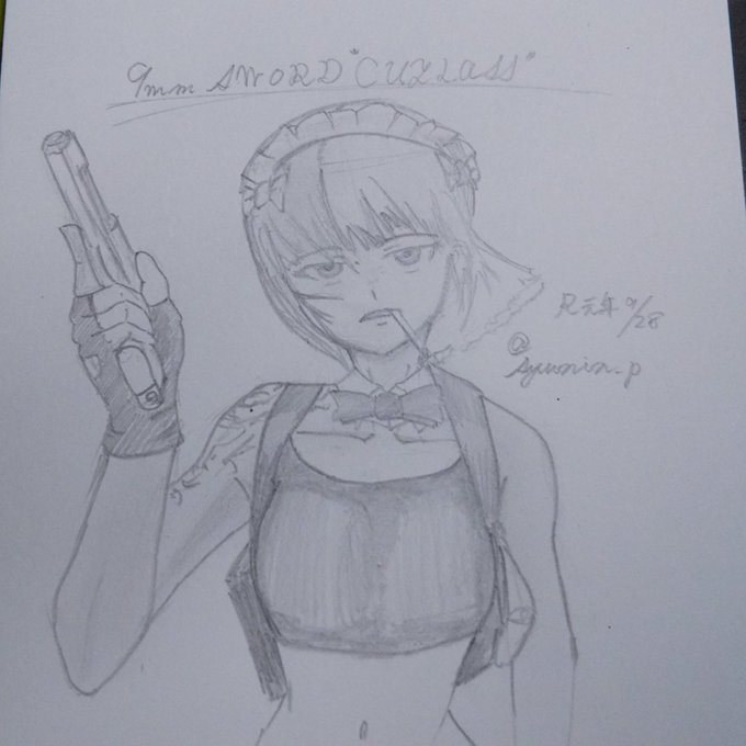 #ガルパン版深夜のお絵描き60分一本勝負 #ガルパン版深夜のお絵描き60分一本勝負_20190928 お題「カトラス」混ぜるな危険。 開始が遅れました。時間がないのでこの程度です。 格好いい二挺拳銃の、、、(乾いた発射音)
