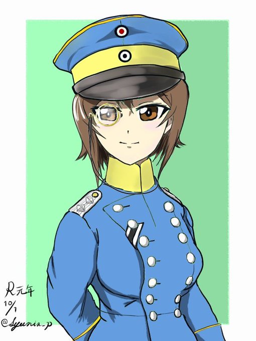 #ガルパン版深夜のお絵描き60分一本勝負 #ガルパン版深夜のお絵描き60分一本勝負_20191001 「片眼鏡」の西住まほさん。 モノクルは目に悪いそうですが、かっこいいですよね。 恰好はプロイセン槍騎兵の「Überrock」です。 遅刻申し訳ありません........