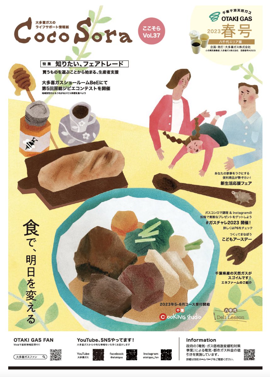 千葉で発行されているフリーペーパーここそら春号の表紙描かせていただきました!(大多喜ガス) 千葉で生まれ育って、今も千葉県在住なので千葉県の企業さまにご依頼いただけてとても嬉しいんです。(もちろん県外からのご依頼も嬉しい) そろそろ春ですな。 ここそら otakigas-fan.com/cocosora/