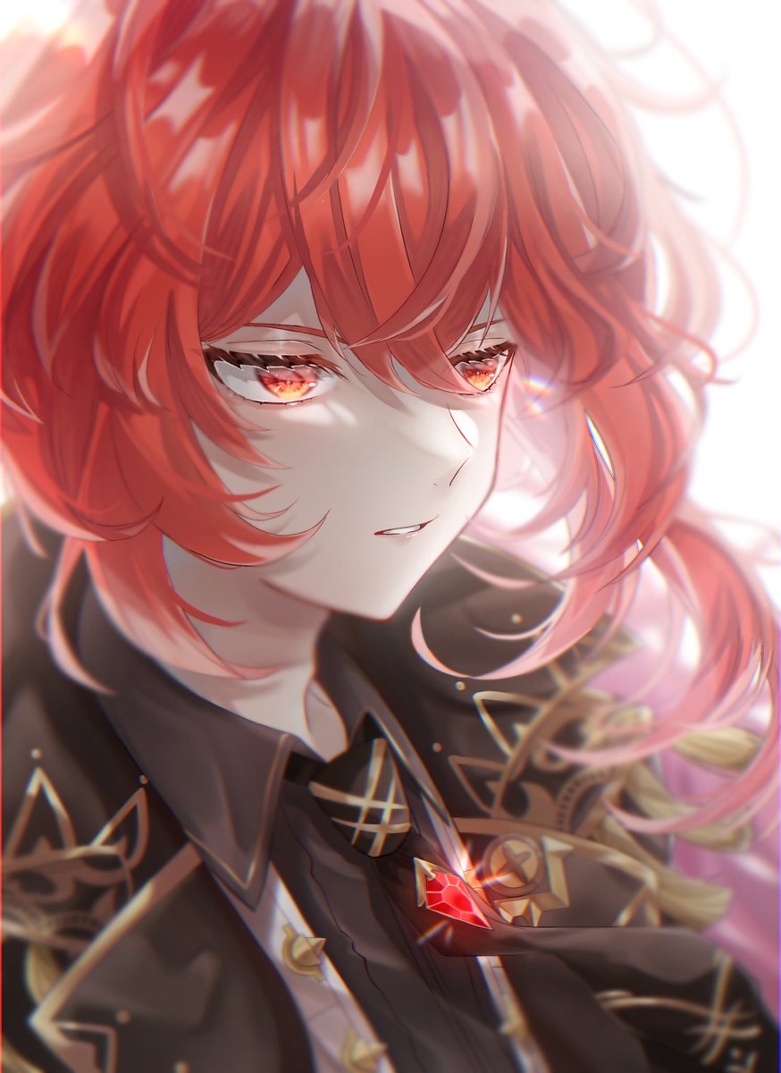 不穏なディルックの旦那…? やっぱり笑顔もいいけど いつも見せないような ちょい不穏なキャラの顔好こ💕 #原神 #GenshinImpact #Diluc #絵描きさんと繋がりたい