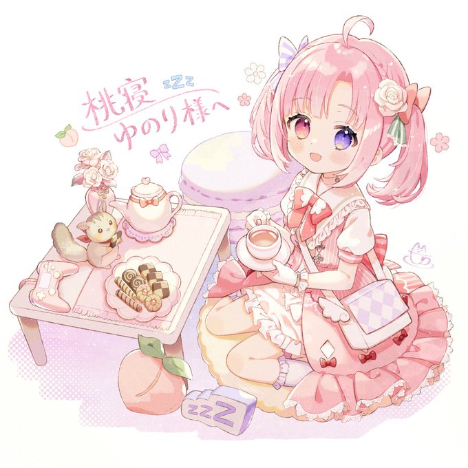 #skeb(skeb.jp/@syuuuuuuuuuu)にてリクエストを頂き、Vtuberの「桃寝ゆのり」ちゃんのイラストを製作致しました。 リクエストありがとうございました!🍑💤🎀 #momone_yunori