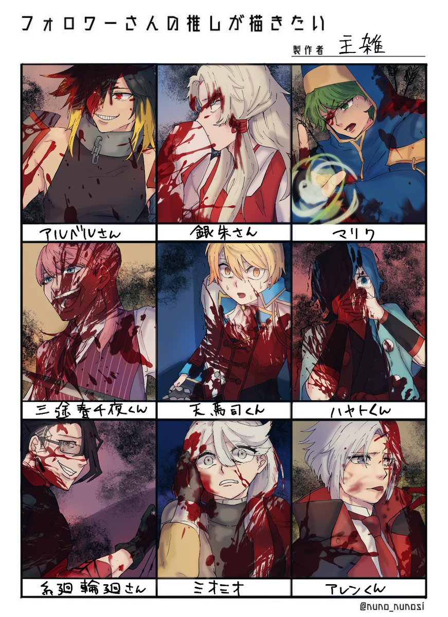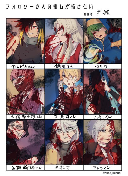 #フォロワーさんの推しが描きたい 血祭り1枚目できました~! ※めっちゃ血があります注意!!!! 順番前後したりしてるのでまだの方もう少々おまちを!