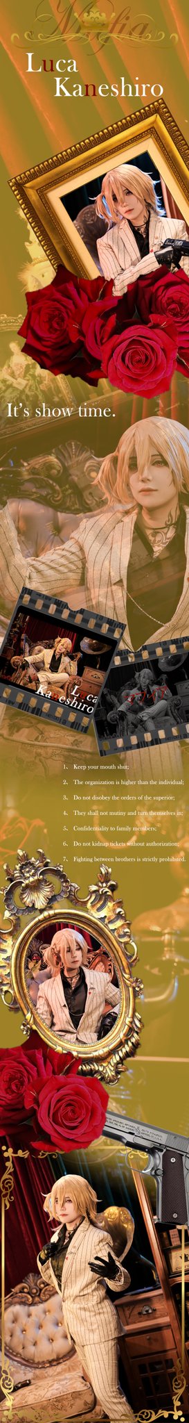 “全て手に入れるのは,全て捨てた奴だけ。 能够将一切掠夺占为己有的,便是曾舍弃一切的家伙。 結局弾丸一発で,分からせてやるしかないだけ。 结果仍需一发子弹,才可以让他们彻底明白这样的道理。” 出镜:原po君贤 摄影:ET 棚子:兔喵 后期:君贤 #drawluca #LucaKaneshiro #nijisanjicosplay