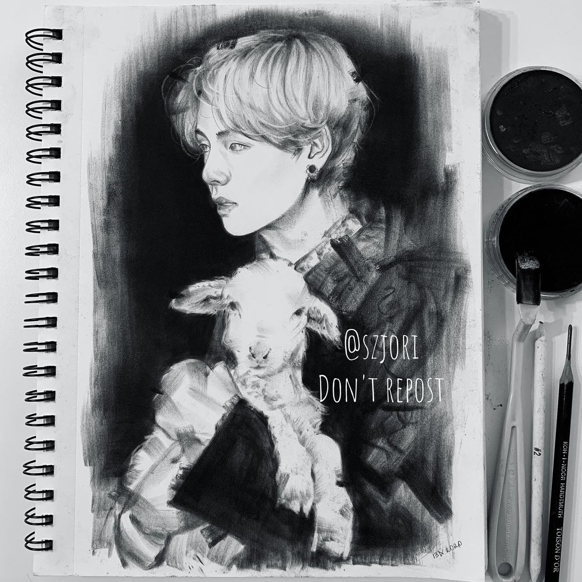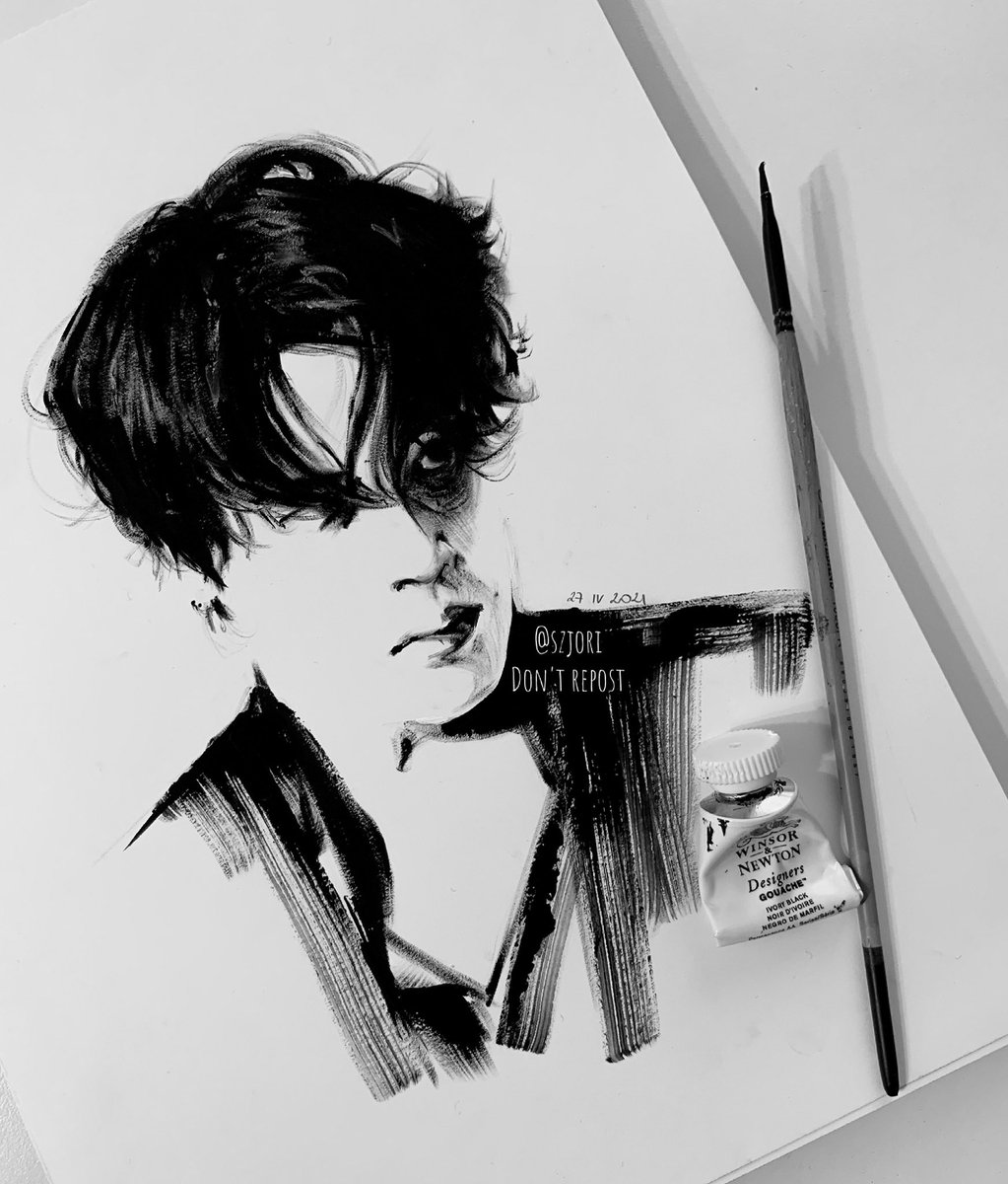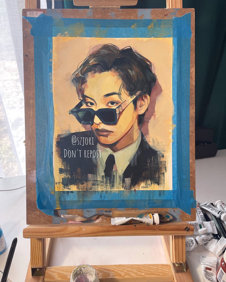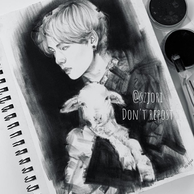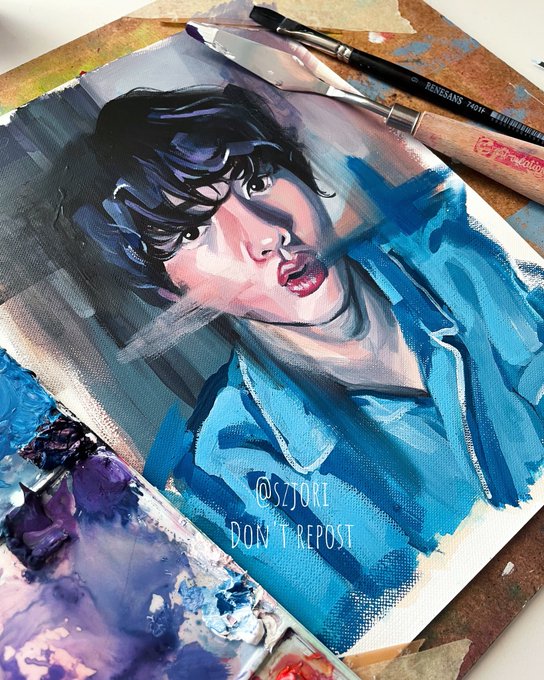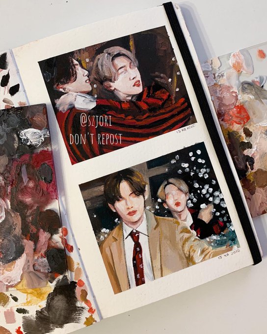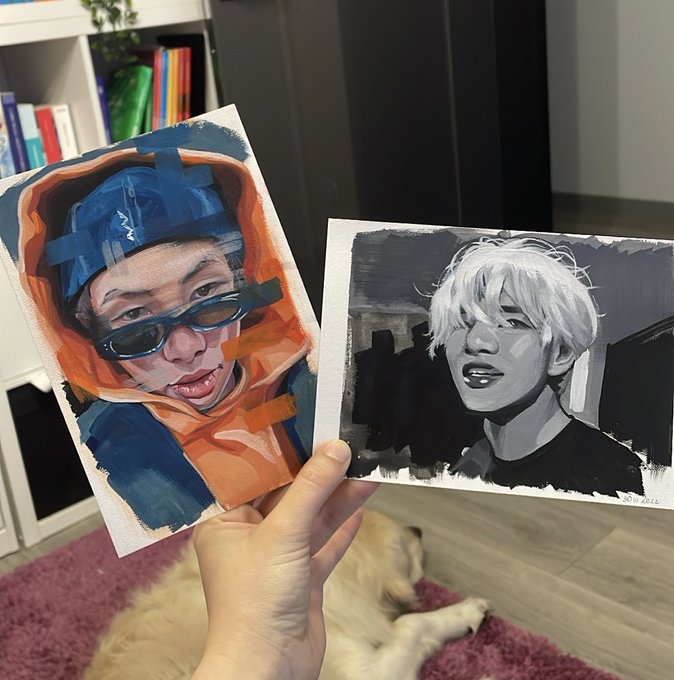 These 2 paintings are for sale! DM if you're interested #NAMJOON #TAEHYUNG #btsfanart Retweets would mean a world to me ❤️