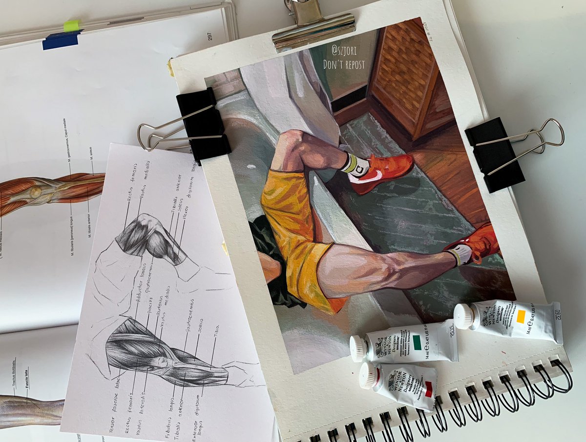 anatomy study with Jungkook's legs 🙆♀️ #jungkookfanart #btsfanart #anatomydrawing #gouache