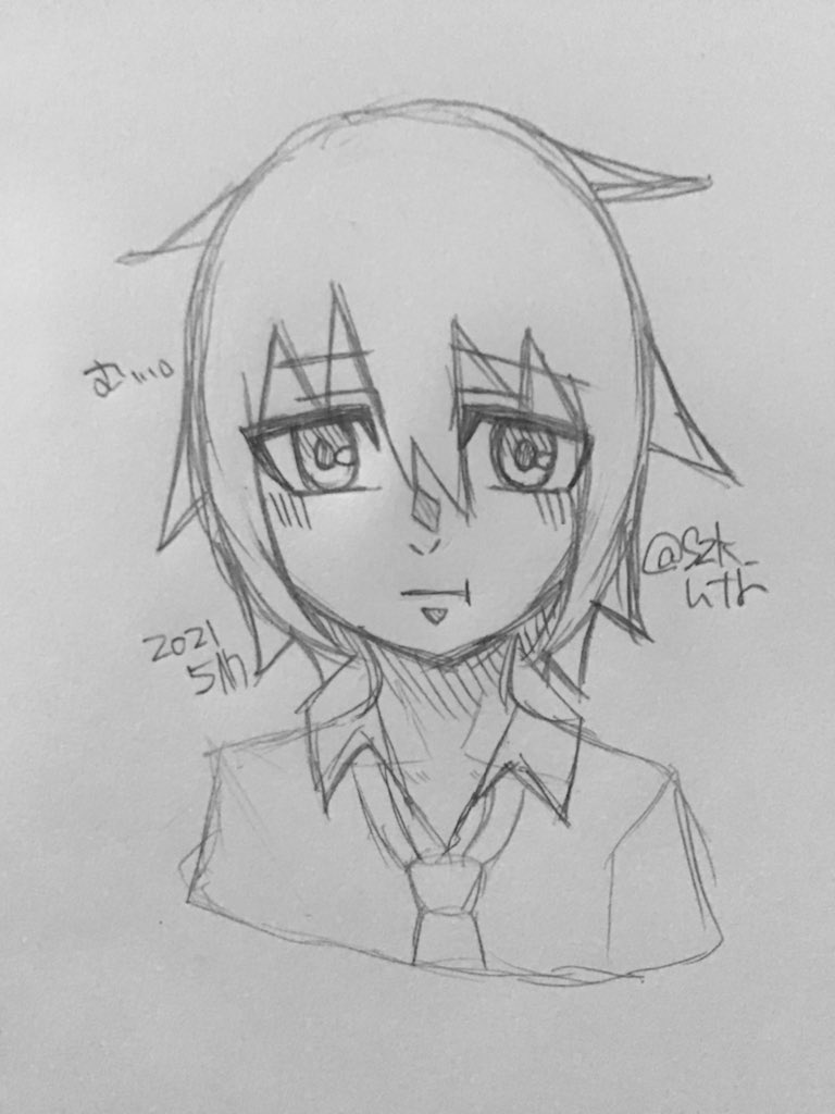 おはようごぜーます まだ眠くて目が半分しか開いてないですが今日のアナログ 不機嫌男の子です(*>∀<*) デジタルの塗り終わらせてオリキャラ作るぜ〜 #イラスト好きな人と繋がりたい #お絵描き好きさんと繋がりたい #アナログイラスト #落書き #rkgk