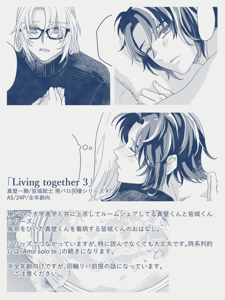 【2/12 新刊サンプル②】Living together 3 A5/24P 現パロ同棲シリーズ新刊です。 風邪をひいたまかべくんを看病するみなしろくんの話です。 ※全年齢向けですが、同軸リバ前提のため、苦手な方はご注意ください。 pixivサンプル→pixiv.net/artworks/10488…