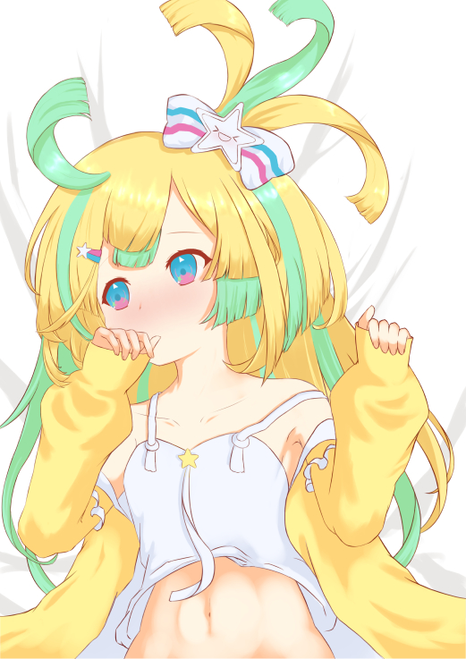 あまはののおなか... たぶんツインテールの子に押し倒されてる #天川はの #はのーと
