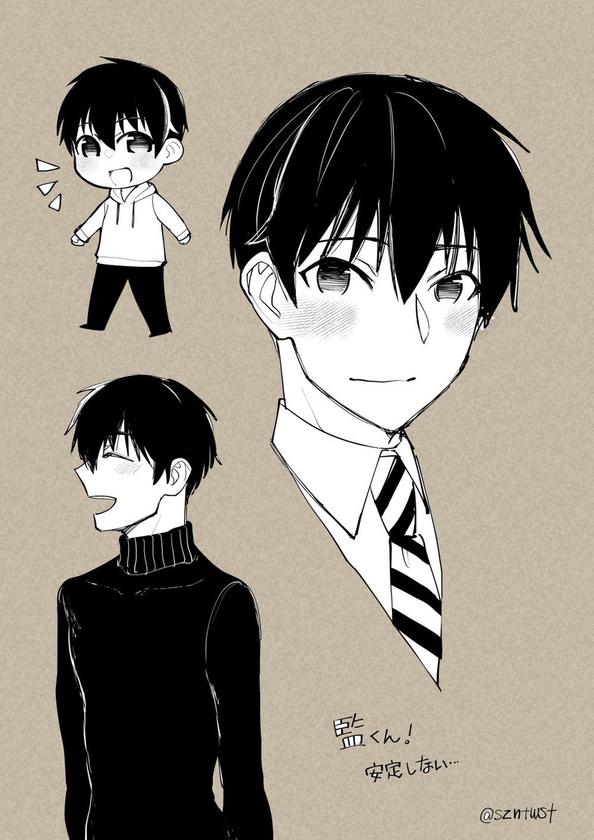 これは昨夜描いてた監くんらくがき。本当に未だに安定しなくて過去のまとめをたまに見てはダメージを受けてます。 前髪の真ん中がまとまってるのと、耳の上がハネてるのが目印!