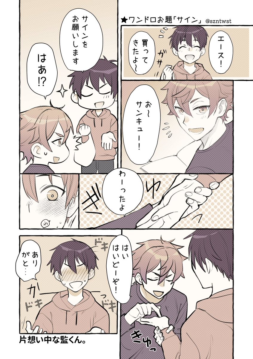 27 501 #春の男監督生受け60分合宿 お題「サイン」でエー監♂ +17分 ⚠️男監督生顔あり 買い出しに行ってきた監くん。 23/04/26 13:23