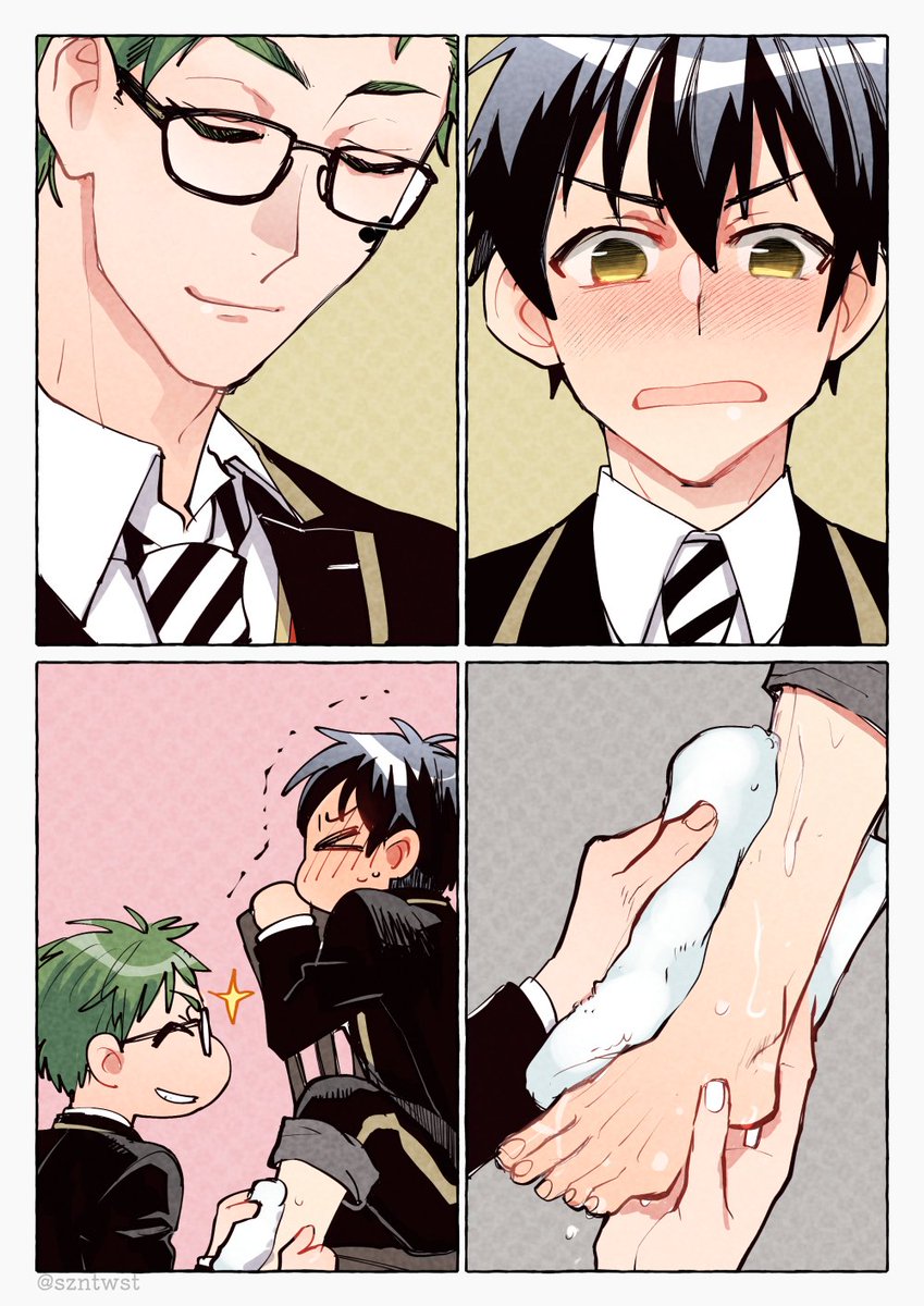 49 526 春の男監督生受け60分合宿 お題「裸足」でトレ監♂ ⚠️顔あり男監督生 裸足で歩いたあとのやりとり。 🦐「自分でできます!!」 ♣「いいから、ほら」 🦐「〜〜〜っ」 23/05/02 11:26
