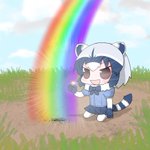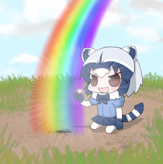 虹の根元でピカピカのどんぐりを見つけるアライさん