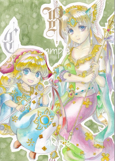 1 9 聖剣伝説3のリースとシャルロット。 ゴシック期のミ・パルティスタイルというドレスを着せてみた作品。 2人のイニシャルにヤンキー文字(?)みたいなのを入れて、天使の翼を添えました😁 #聖剣伝説3 #リース #シャルロット #ゴシック期ミ・パルティドレス #水彩イラスト 22/09/21 13:15