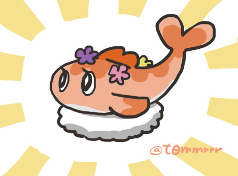 6 22 久しぶりに会った友人がシャリタツの魅力にとりつかれてたので、夕食で食べたくら寿司のエビのお寿司シャリタツ描きました 23/01/23 22:56