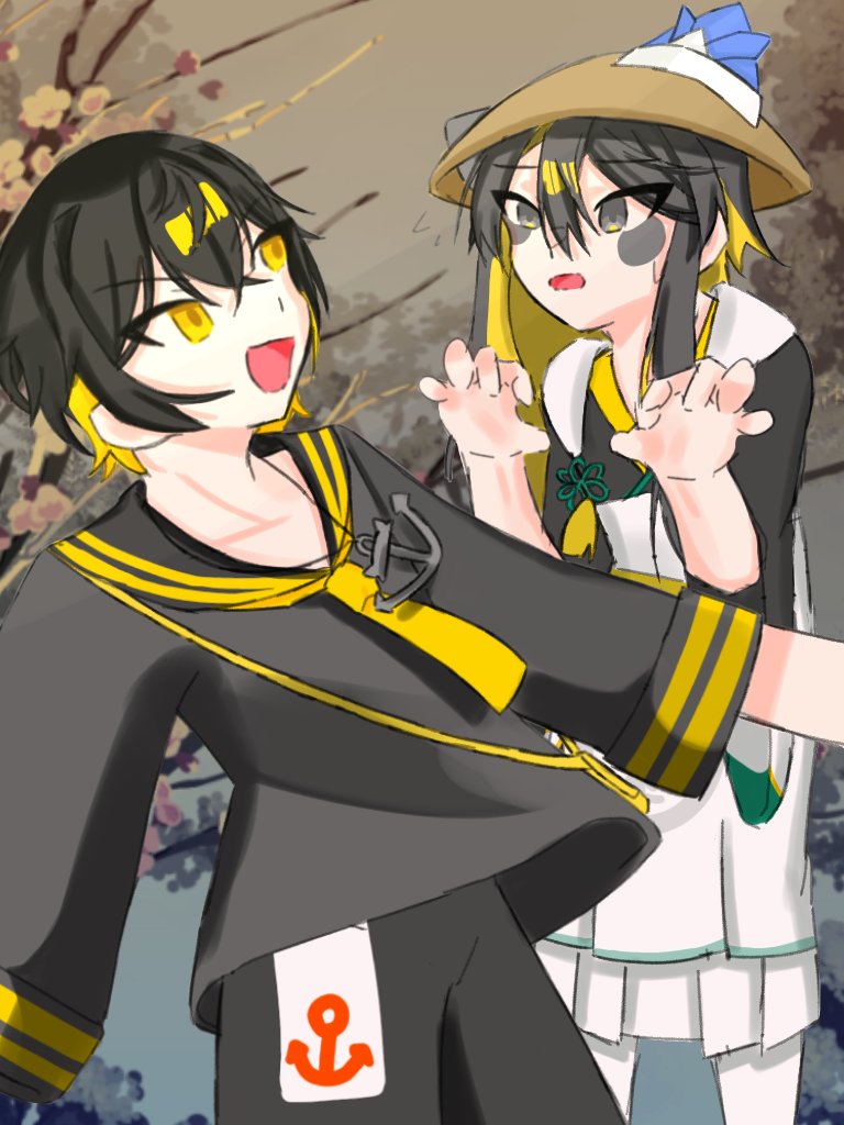 正月アプロ良き...ガンちゃんは第2のオウガさんかな? #夜十神封魔正月衣装 #羽継烏有正月衣装 #水無世燐央正月衣装 #緋崎ガンマ正月衣装 #封魔絵 #Uyu_Art #ガンマのラクガキ #燐央絵