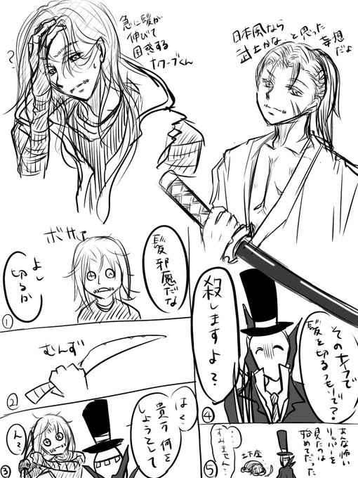 7 23 落差の酷い傭リ?落書き。短髪も良いが長髪はどう?🤕くんならナイフで髪を切ろうとして✂️さんに泣かれるんじゃない?とフォロワーさんとした会話ネタ(一切泣いてない) 20/03/20 18:51