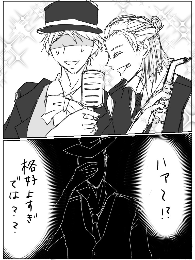 27 127 お題「明瞭」「たまにはこんなこともある」お借りしました!明瞭×銀テンです。珍しく(?)イチャついてる。 #傭リお絵描き60分一本勝負 21/09/19 23:44