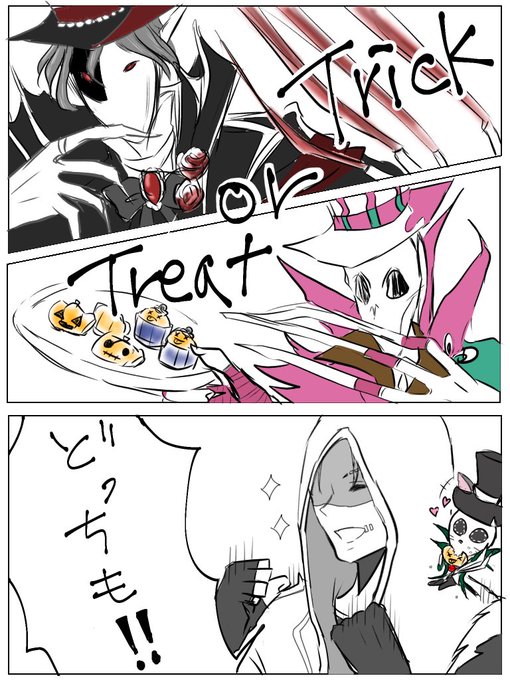 43 154 お題「Happy Halloween‼︎」お借りしました。選べない🤕くん。傭→リです。 #傭リお絵描き60分一本勝負 21/11/01 00:50