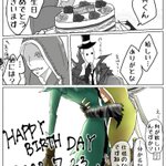 お題「誕生日」お借りしました。傭リ。突然思い立って描いたので素直に祝っていちゃついてるだけ!間に合って良かった…。 お誕生日おめでとう。 #傭リお絵描き1週間一本勝負