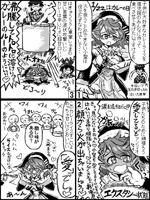 ミストレ4コマ(15) 華麗なる日 アンツィオ「カレーも愛もじっくりことこと煮込むほど味わい深くなるのですね、車掌さま♡」 アンツィオ誕生日おめでとう! #ミストレイラスト #小聖の誕生祭でしゅうううう