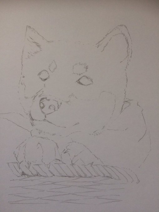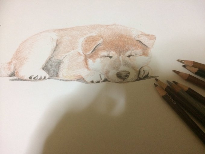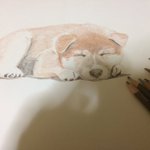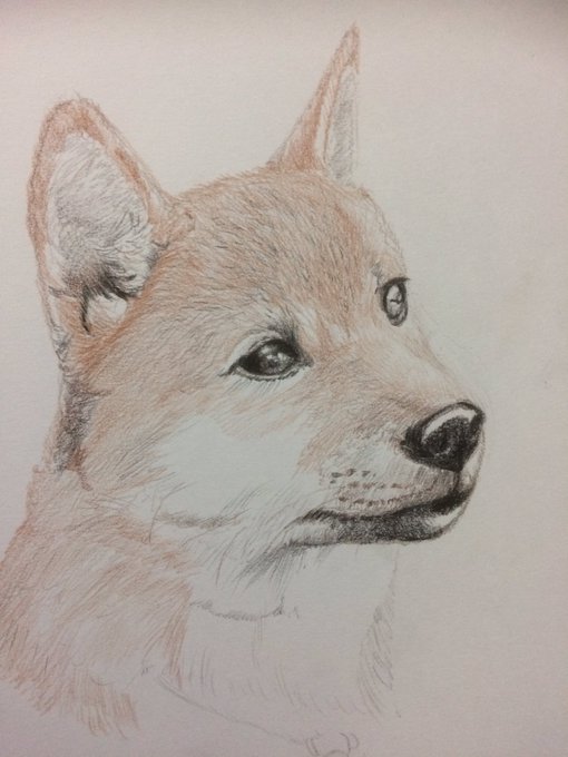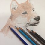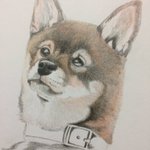 色鉛筆ゆるふわ仕上げです、 コツコツ頑張ります。 皆様良い日曜日お過ごし下さい #柴犬イラスト