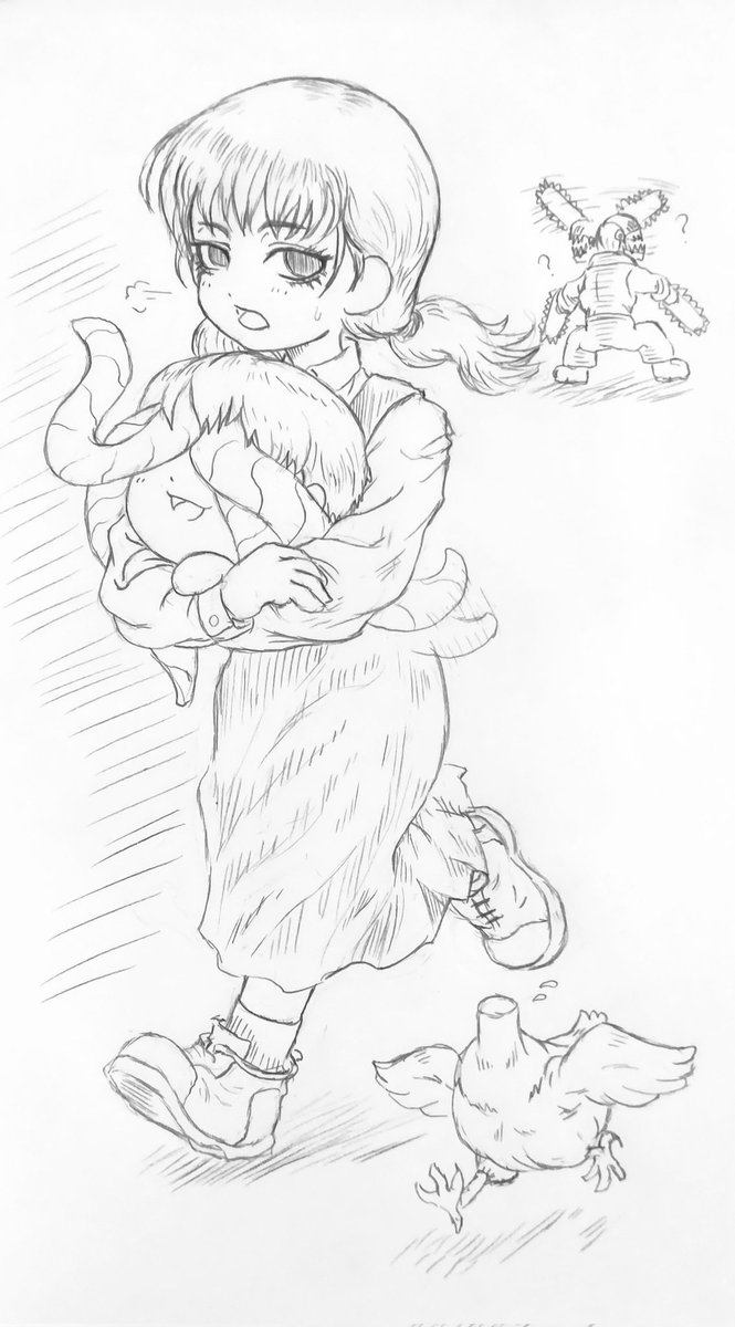 #今年も残りわずかなので今年一番伸びた絵を貼る #チェンソーマン コレだった。 チェンソーマン第2部でユウコが死んだの見てから個人的願望で描いた落描き。 その時タイムリーなチェンソーマン人気に乗れたからやな。 (;´∀`) コケピーもユウコもめっちゃ好き。 死んだが。 ではお休みなさい。