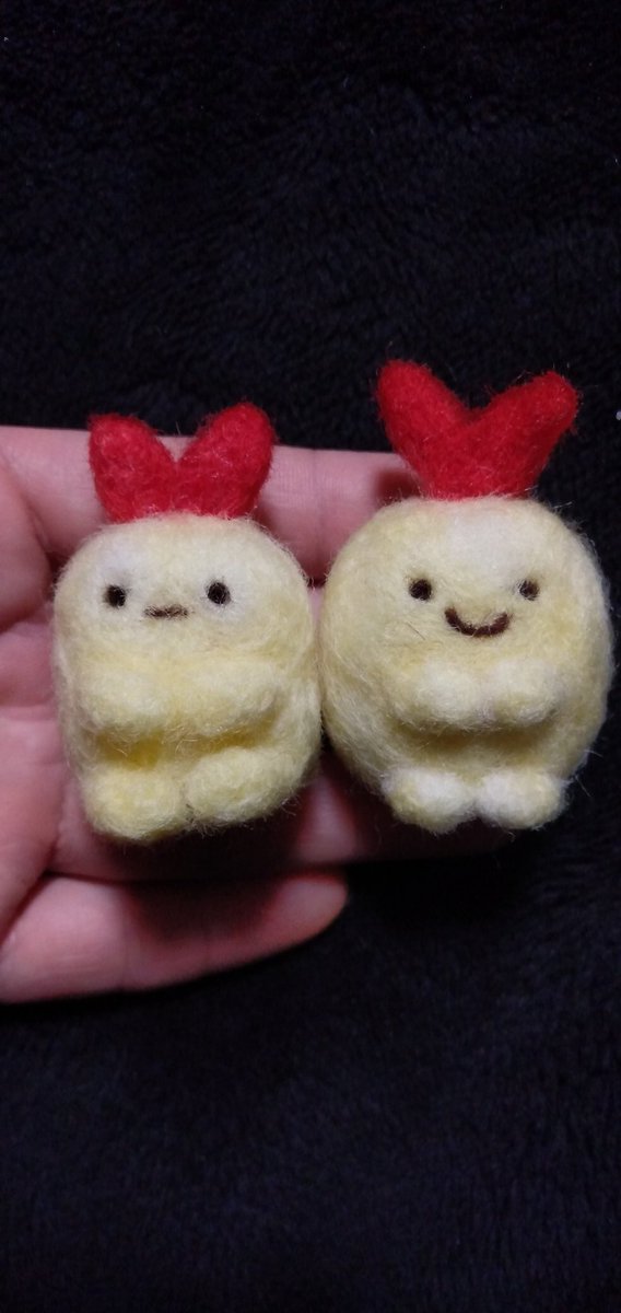 えびふらいのしっぽ2個目(左)完成!…でもなにか違うような🤔😅 #羊毛フェルト
