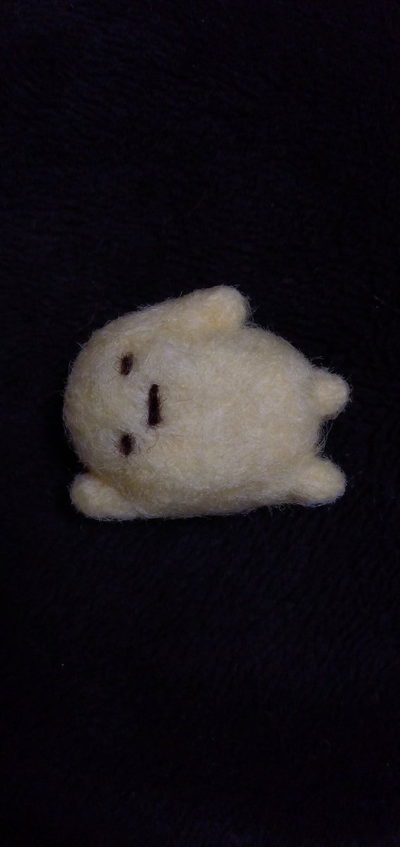 ひよこみたいなの出来た♪どちらかと言うとぺんぎん寄りの口やけど…目が大き過ぎたかな🤔?もしかしたら修正するかも?!…たぴよこになってるかも?!笑 #すみっコぐらし #羊毛フェルト