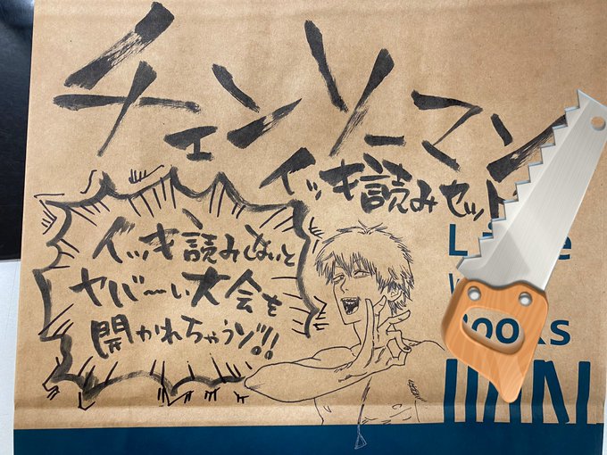 今日はチェンソーマンとスパイファミリーのイッキ読みセットが売れたのでお顔ホクホクです(笑)❤️ ということで、デンジくん描きました… が…ついに1巻品切れた… ここにきてまた売れてきたぞぉ~チェンソーマン❤️ #チェンソーマン #チェンソーマンセットPOP #デンジ