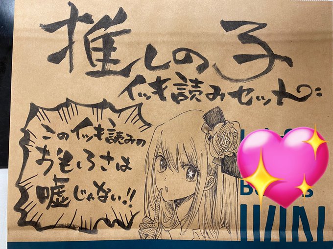 品はもうほんと売切れまくってるけど、ただいま見事にハマってしまってどーしても推しのアクアくんを描きたかったので、重版でいっぱい入荷しますようにと願いを込めてアクアくん描いたお(笑)❤️ #推しの子 #推しの子セットPOP #星野アクア