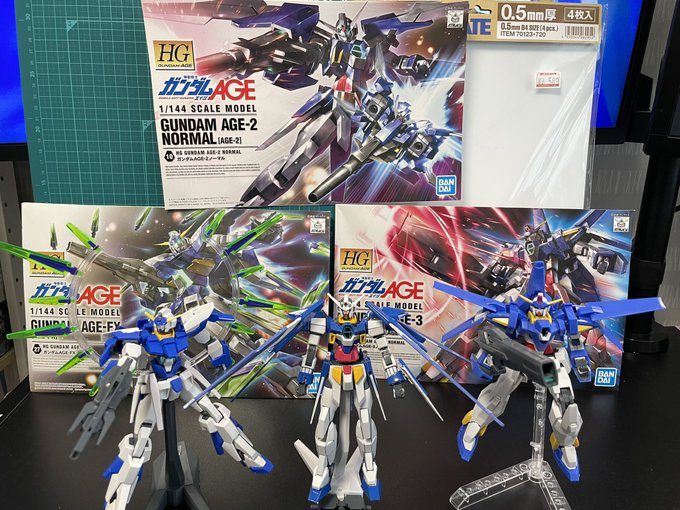 ガンダムAGEの機体作りました。 ダブルオーと続いてリアタイしてたなー。 内容は置いといて機体はカッコよくて好きです。 AGE-2は初めて部分塗装と墨入れしてます。 #ガンプラ #ガンダム好きと繋がりたい #今月作ったプラモ晒そうぜ #ガンダムAGE #ガンダムAGE-2 #ガンダムAGE-3 #ガンダムAGE-FX