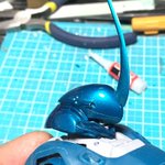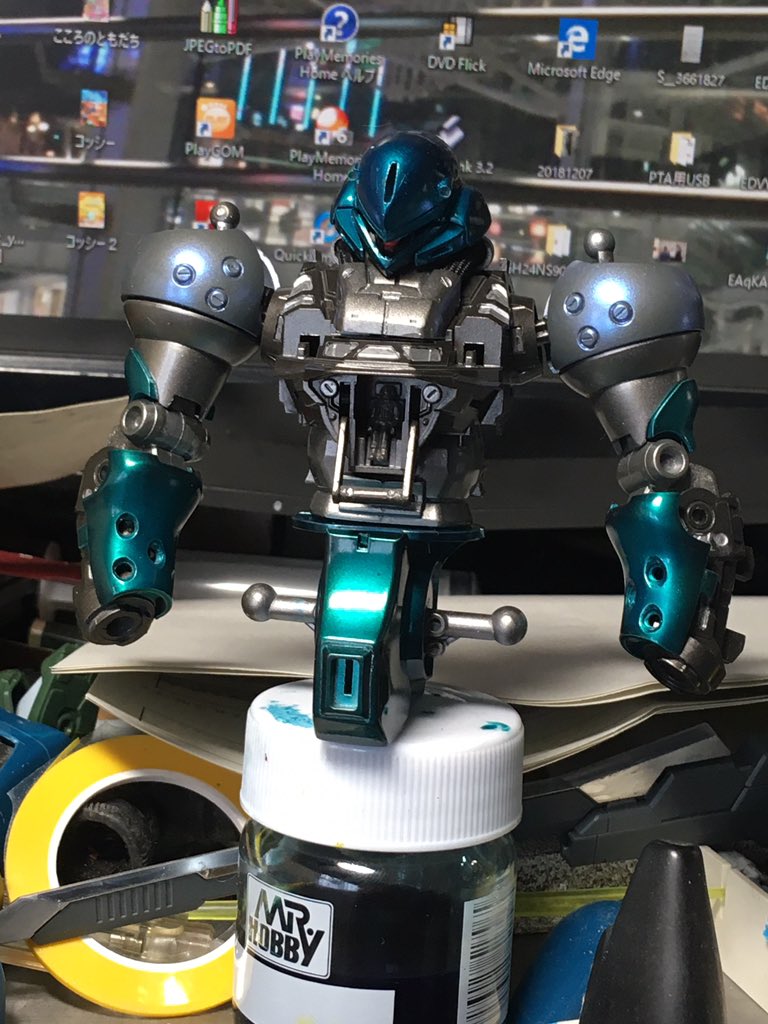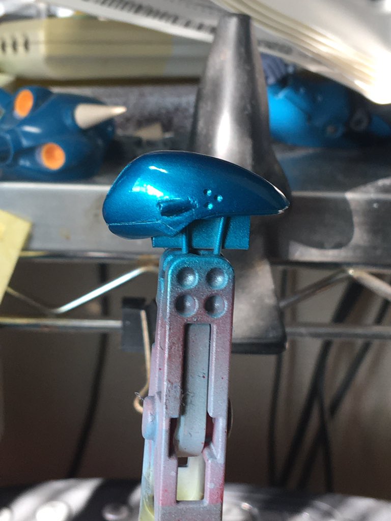 1 4 ケンプファー進捗 とりあえず外装塗装しました! 塗り分けは基本のまま、色味にこだわりました。 キャンディブルーグリーン+ガンクロームグレー+ブルーパール+ゴールド とメタリック色で攻めました。 名付けて「ケンプファー・ジュエル」 ってとこですかね #ガンプラ 20/04/15 21:03