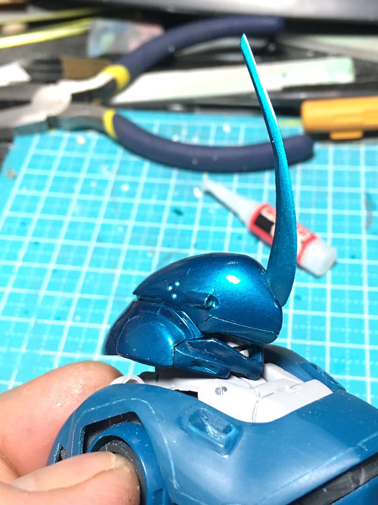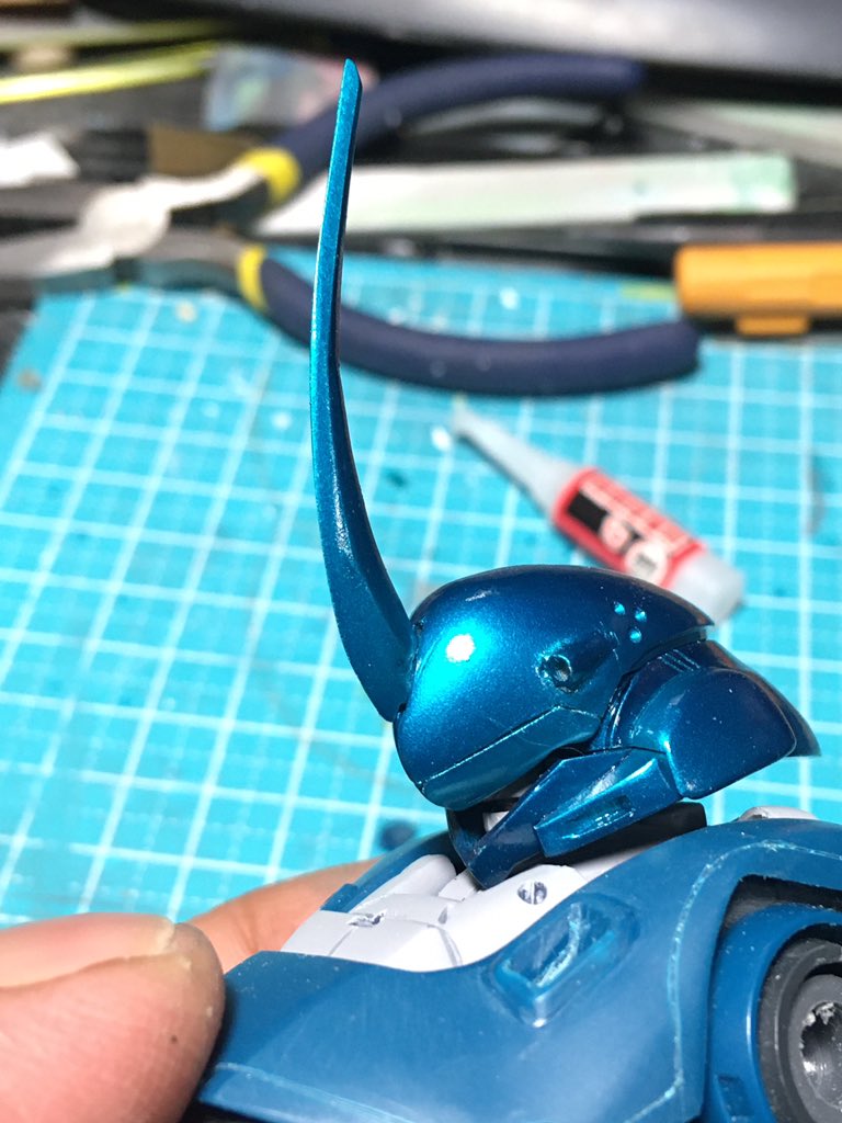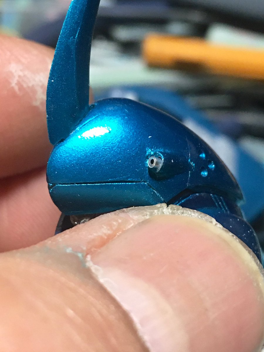 ケンプファー進捗 頭部バルカンにアルミパイプ挿し込みました。 #ガンプラ