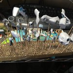 ケンプファー進捗 外装残りサフ吹き。 まだ加工してないパーツあるから全部ではない。 この後下塗りシルバーから縁どり黒鉄ぼかし→調色したクリアブルーグリーン重ね塗り、とまだまだ工程は沢山。 乾燥待ちの間にスジ彫りやらプラ板加工やらもやんなくちゃ。 さて、組み上がるのはいつ? #ガンプラ