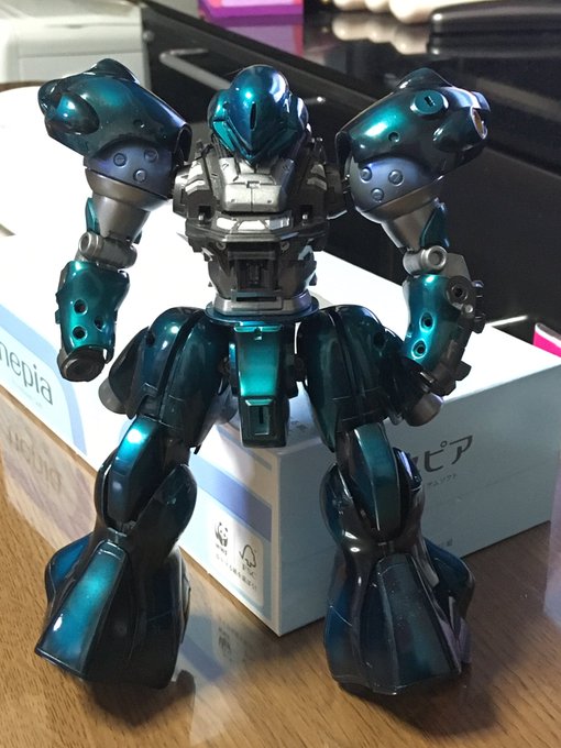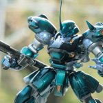 ケンプファー進捗 とりあえず外装塗装しました! 塗り分けは基本のまま、色味にこだわりました。 キャンディブルーグリーン+ガンクロームグレー+ブルーパール+ゴールド とメタリック色で攻めました。 名付けて「ケンプファー・ジュエル」 ってとこですかね #ガンプラ