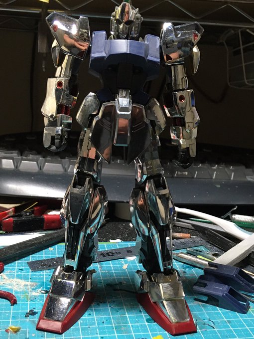 百式 進捗 ちょっとポップな色味になっちゃったかなぁ… シェイド入れてトーン落とすかなぁ… それともメッキ上塗りもポップな色味でバランス取るか…。 #ガンプラ