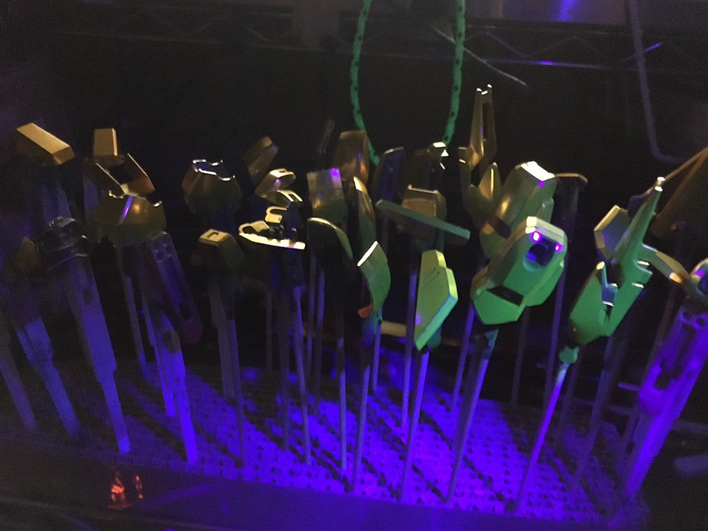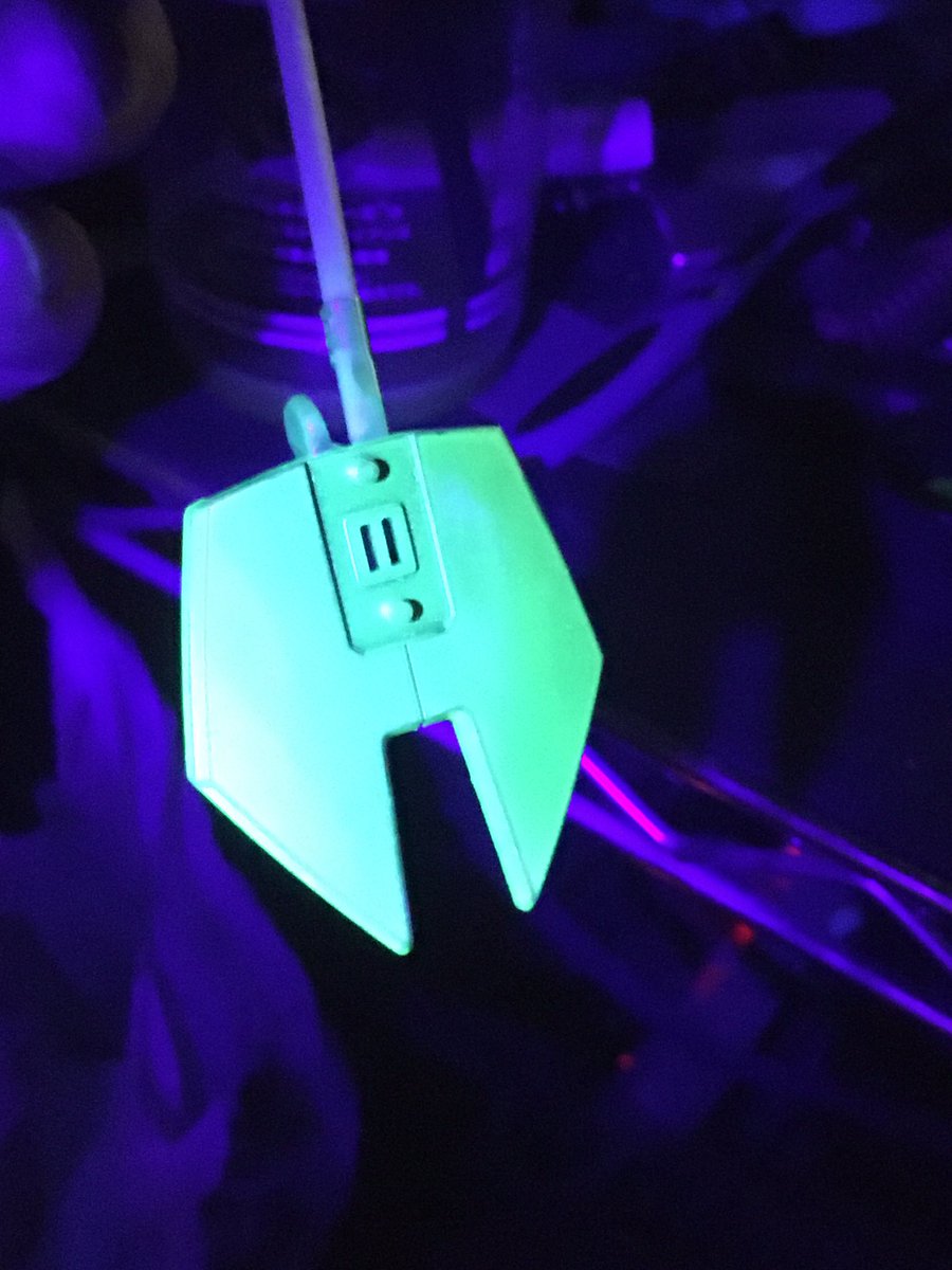 0 2 百式 進捗 ちょっと頑張って蛍光灯とブラックライトの比較を撮影してみた。肉眼で蛍光灯だとしっかりゴールドに見えて、ブラックライト(紫外線灯)のみだと金色の部分が蛍光発色して見える。 自己満足のレベルだがこういったギミックのある塗装というのは塗っていってとても楽しい。 #ガンプラ 20/04/28 00:11